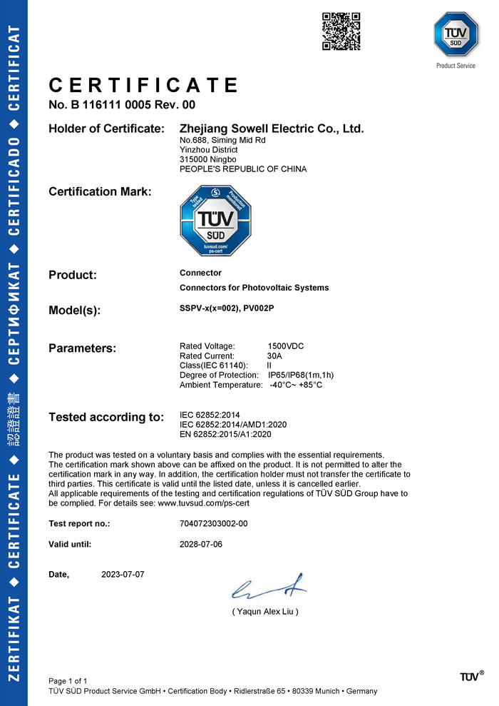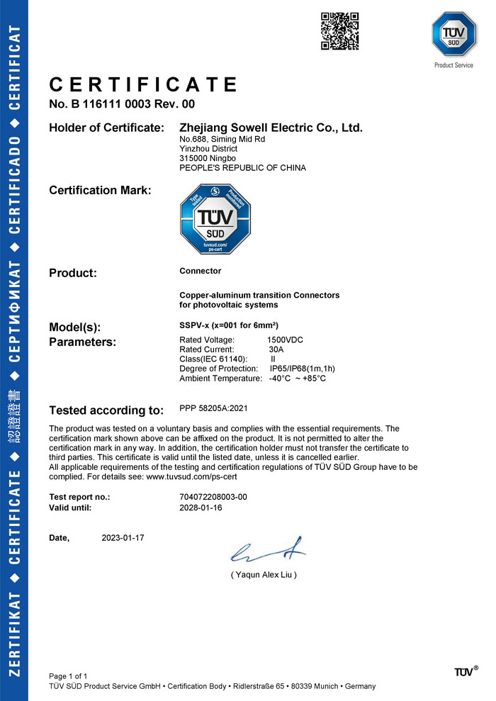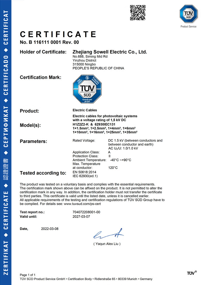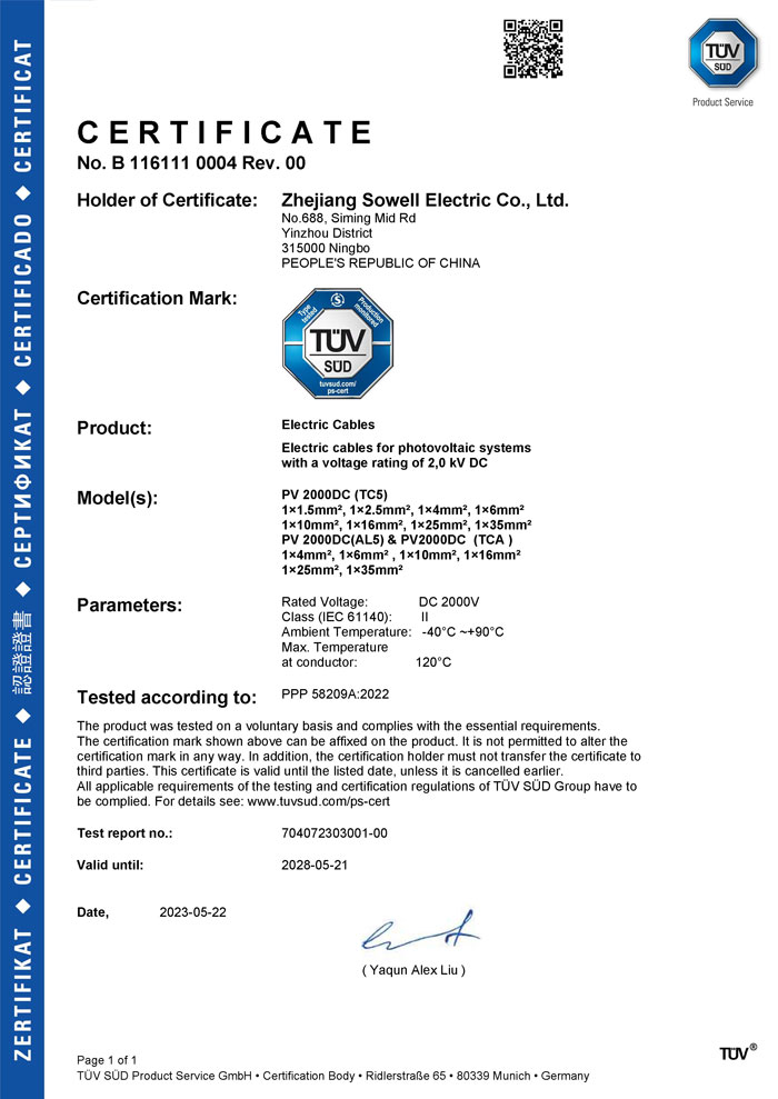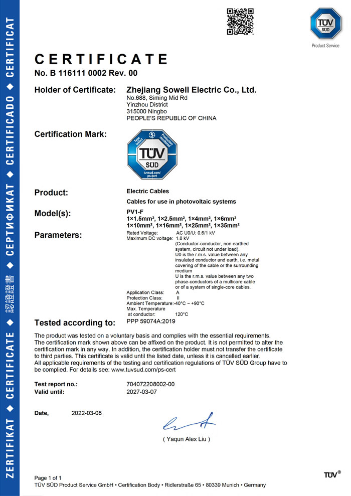iniciou negócios na indústria solar em 2006. Na fase inicial, participamos da certificação de produtos sob uma série de padrões, como 2 PFG 1161, DIN V VDE V 0126-3, EN50521, 2 PFG 1169, etc.cabo solareConector fotovoltaico(Série H1Z2Z2-K, PV1-F, PV2000DC, TCA, SSPV-00X). Como marca responsável, a SOWELLSOLAR faz uma promessa solene de que a resistência à corrente, a irradiação e a reticulação são qualificadas. Não falta cada lote. Temos desenvolvimento de produtos e sistema de serviços de produção enquanto trabalhamos para fornecer produtos e serviços superiores à base de clientes em todo o mundo.produtos em destaque