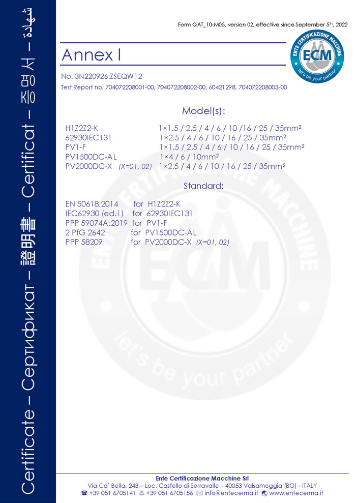 Todos os produtos são fabricados em estrita conformidade com os padrões IEC, EN, TÜV e UL, garantindo segurança, eficiência e durabilidade a longo prazo em sistemas de energia solar.